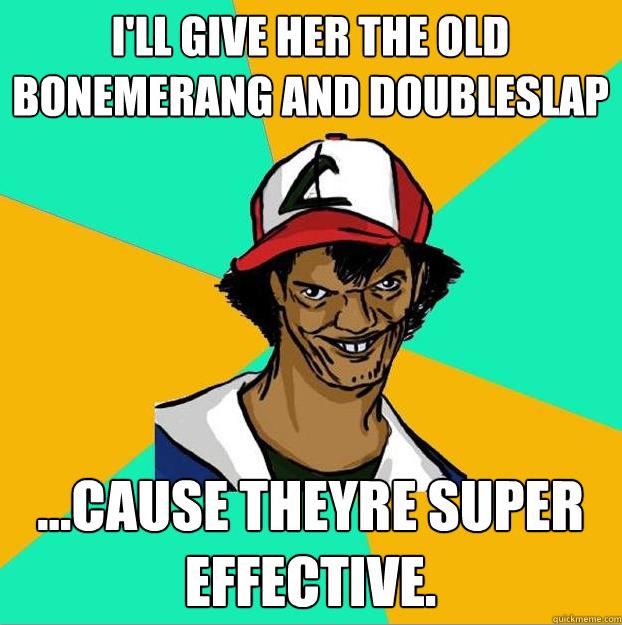 I’ll give her the old boomerang and double slap …cause they’re super effective.